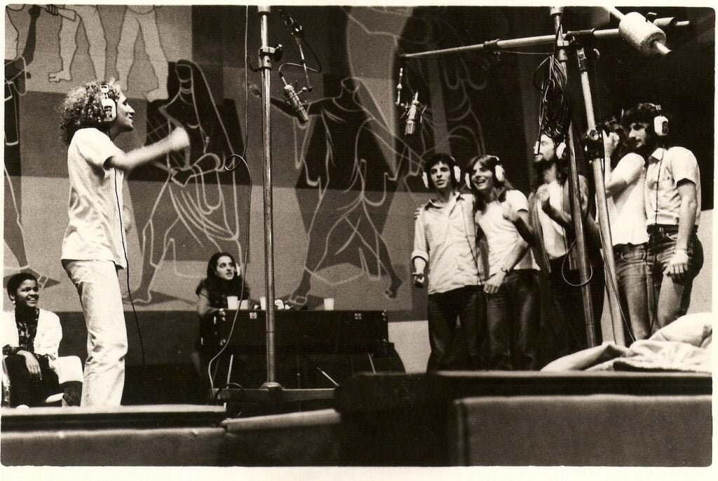 Aí foram chegando amigos e completando o grupo. Celsinho na flauta, Carlinhos na batera, Nelson Presbiteres no baixo e Peninha. Cada um trouxe uma formação musical, as canções surgiram e fomos para o estúdio gravar nosso primeiro Vinil, no estúdio Eldorado.
